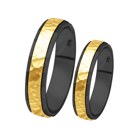 Χειροποίητες Δίχρωμες Βέρες με ανάγλυφες λεπτομέρειες από Κίτρινο Χρυσό Κ9 με Μαύρο Πλατίνωμα. Η τιμή είναι ενδεικτική, για Κ9 και ενδέχεται να μεταβληθεί (ανάλογα με την τιμή του μετάλλου). Τα βάρη για κάθε ζεύγος είναι κατά προσέγγιση και αναφέρονται σε νούμερα 52 γυναικείο και 60 ανδρικό.