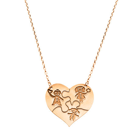 Υπέροχο Χειροποίητο Κολιέ σε σχήμα καρδιά με Οικογένεια από Ροζ Χρυσό Κ14. Η τιμή είναι ενδεικτική, για Κ14 και ενδέχεται να μεταβληθεί (ανάλογα με την τιμή του μετάλλου). Φοριέται σε οποιαδήποτε περίσταση.