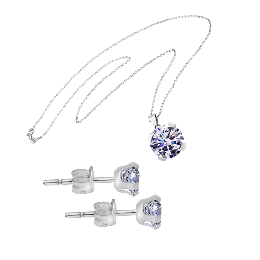 Φανταστικό Σετ με στρογγυλά λευκά Διαμάντια σε κοπή Brilliant. Κατασκευασμένα από Λευκόχρυσο Κ18 που μπορούν να φορεθούν από κάθε ηλικία και σε οποιαδήποτε περίσταση δίνοντας ιδιαίτερη λάμψη. Το Σετ αποτελείται από Κολιέ και Σκουλαρίκια.